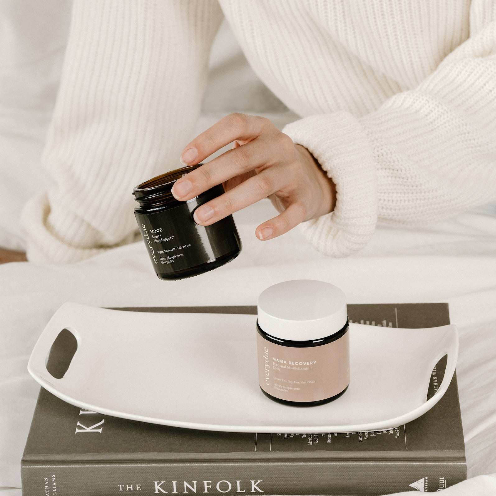 Not sure where to start? Our Mama Recovery postpartum vitamin provides 23 critical nutrients to support recovery, energy, brain fog, milk supply and hormonal balance. If you’re battling postpartum brain fog, stress and anxiety, our Mood supplement will support you in finding a sense of peace and balance thanks to 5 powerhouse ingredients. Want it all? Get the best of both worlds with our Postpartum Recovery Bundle.